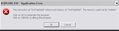 จะฟ้องประโยคนี้ตอนปิดwebเลิกเล่นเน็ต The instruction at "0x62304390" referenced memory at "0x62304390". Thae memory could not be "read".