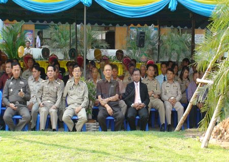 นายแหลมทอง วัฒนา ร่วมวางพวงมาลาในวันที่ 4 มีนาคม 2553 ณ โรงเรียนบุญเหลือวิทยานุสรณ์
